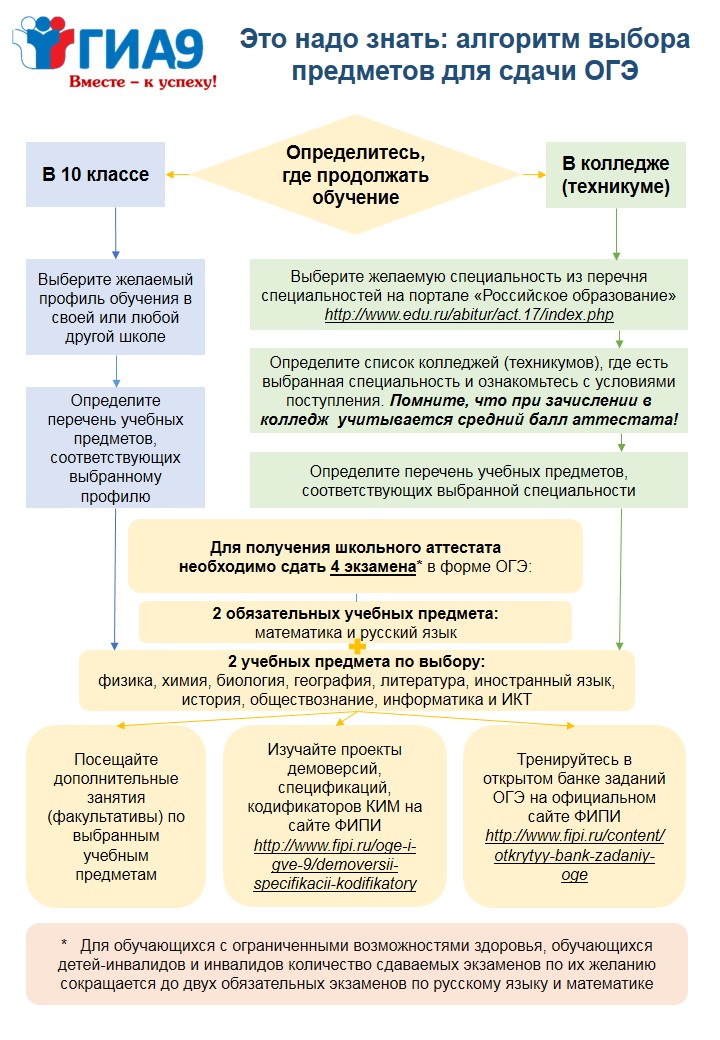 Памятка. Алгоритм выбора предметов для сдачи ОГЭ 9 класс (скачать *.jpeg)